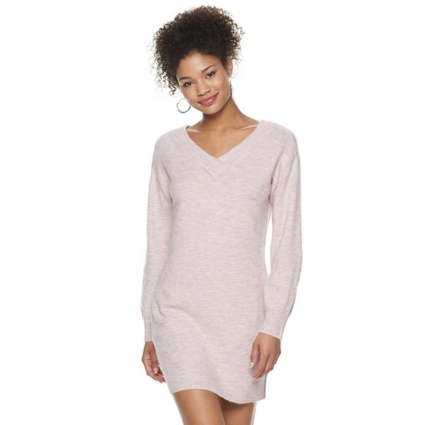 Juniors It S Our Time Balloon Sleeve V Neck Sweater Dress